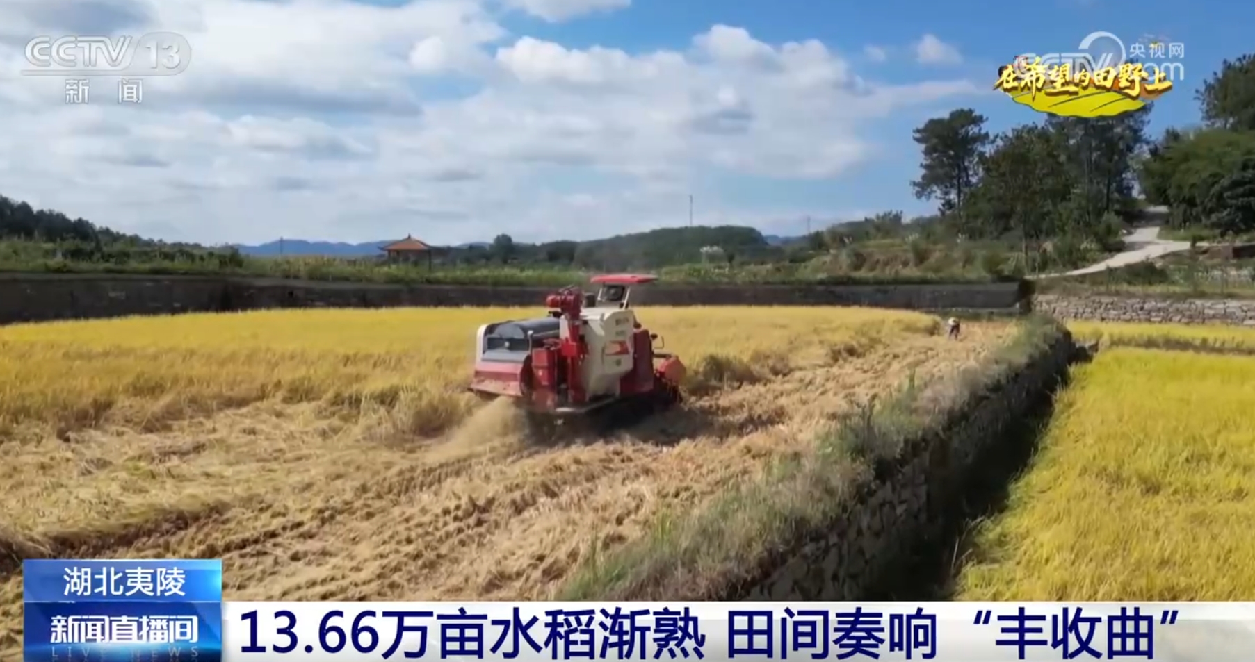 在湖北宜昌市夷陵区,13.66万亩水稻渐次成熟,种植户们抢抓农时开镰收割,确保颗粒归仓。