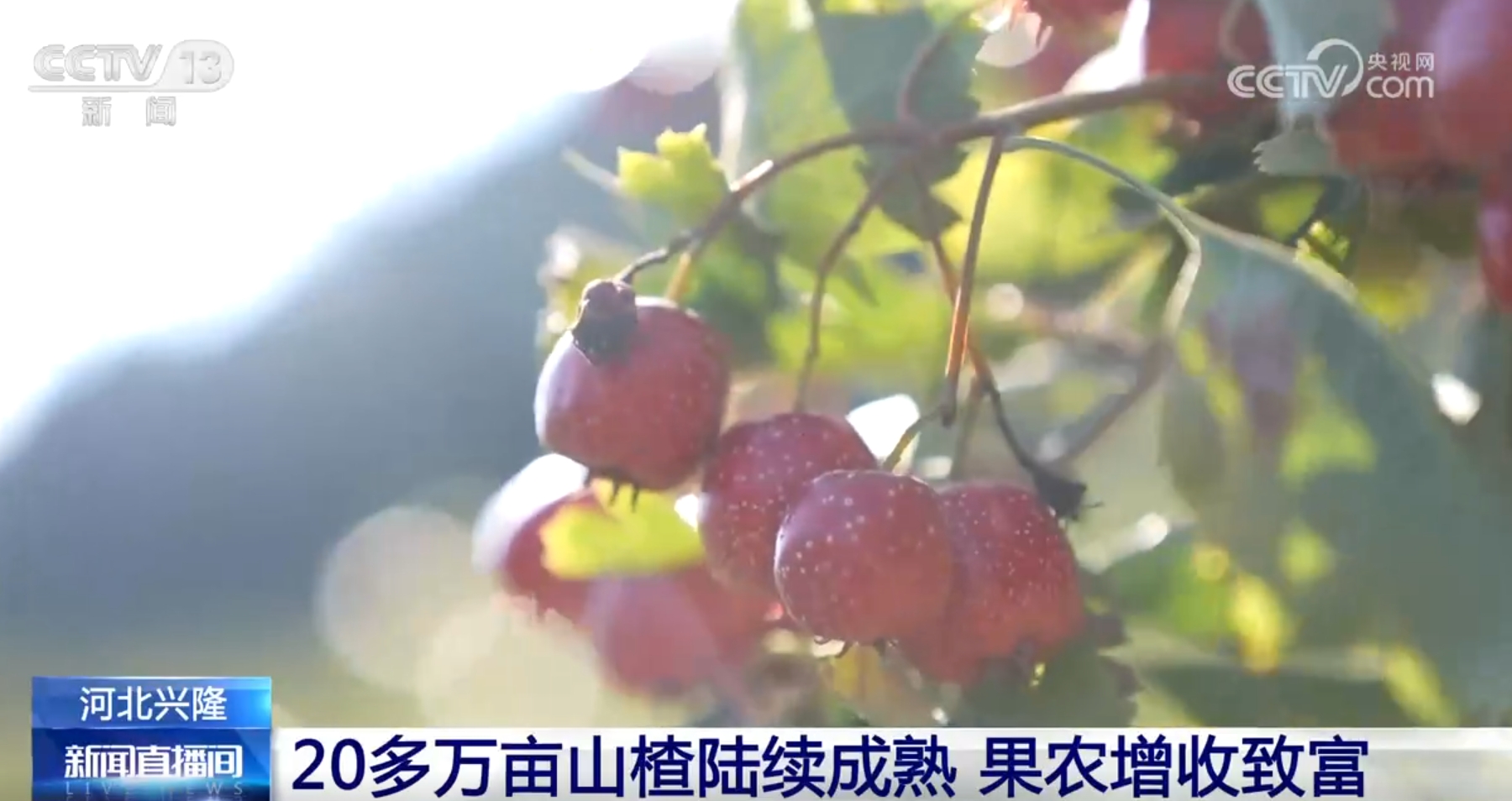 近段时间,河北承德兴隆县的22.5万亩山楂迎来丰收。漫山遍野的山楂挂满枝头,果农们穿梭其间,采摘、分拣、称重、装箱一气呵成。据了解,兴隆县山楂优种覆盖率达到83%,全县山楂年产量18万吨。依靠丰富的山楂资源,当地成立了山楂加工企业70多家,带动果农增收致富。