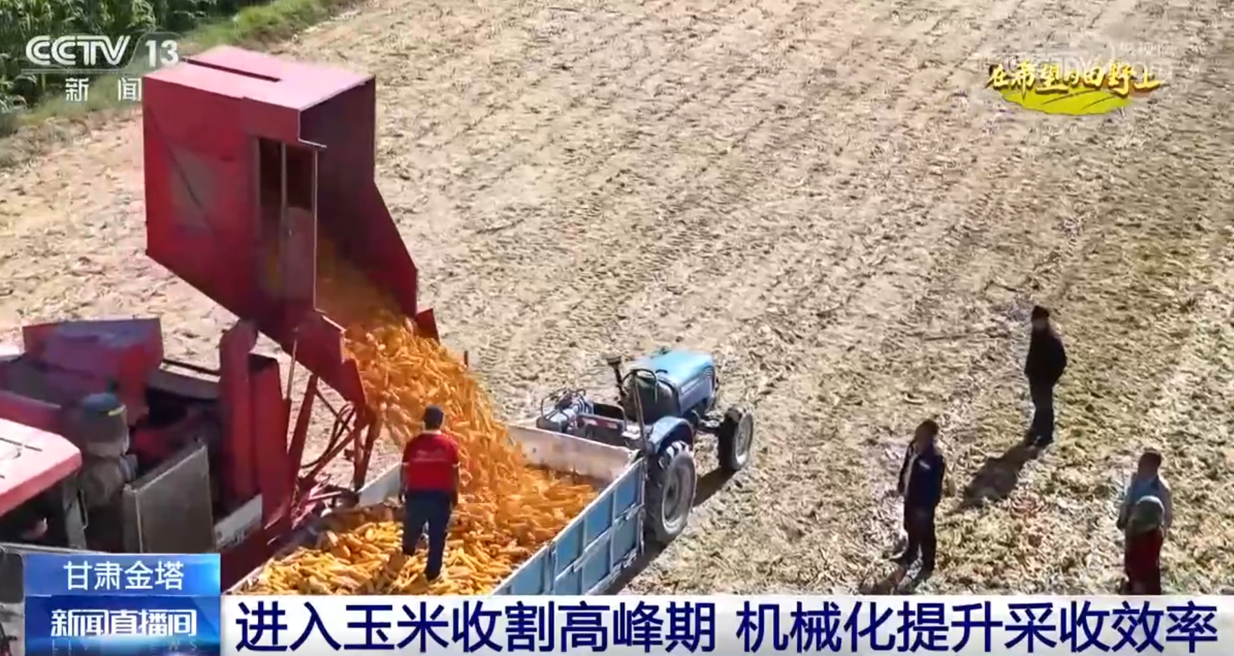 在甘肃酒泉金塔县,15万亩玉米陆续进入收获期,当地投入600多台收割机提升采收效率。